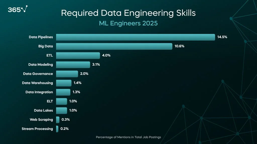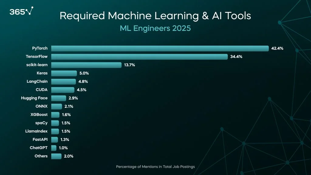 In our latest annual analysis of the machine learning engineer job market, we've examined over 1,000 job postings—bringing you current insights into what employers want from ML engineers in 2025.