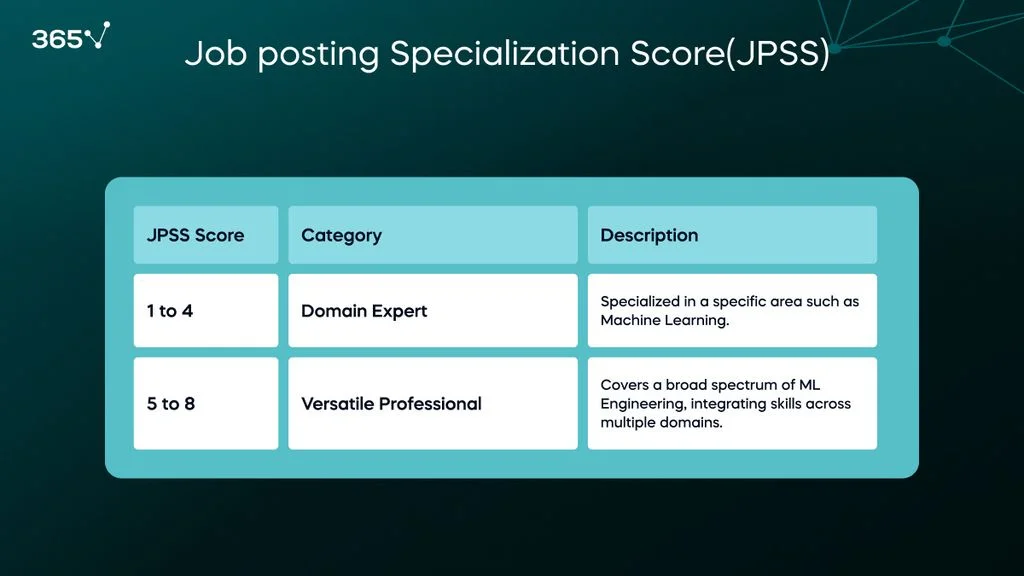 While this is the traditional description, what does the current machine learning engineer job market actually demand? To answer this question, we developed our innovative Job Posting Specialization Score (JPSS)!
