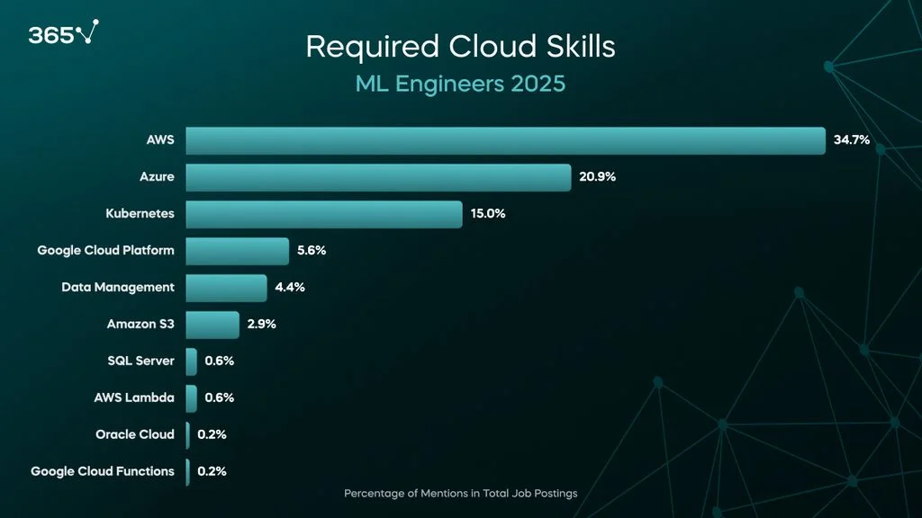 Cloud skills have become a must-have machine learning engineer skill as more companies move their data and workflows to popular cloud platforms. They let teams build, train, and deploy models faster, without worrying about setting up their own servers.