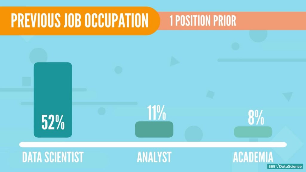- Frequently the previous job data scientists had was an analyst position;