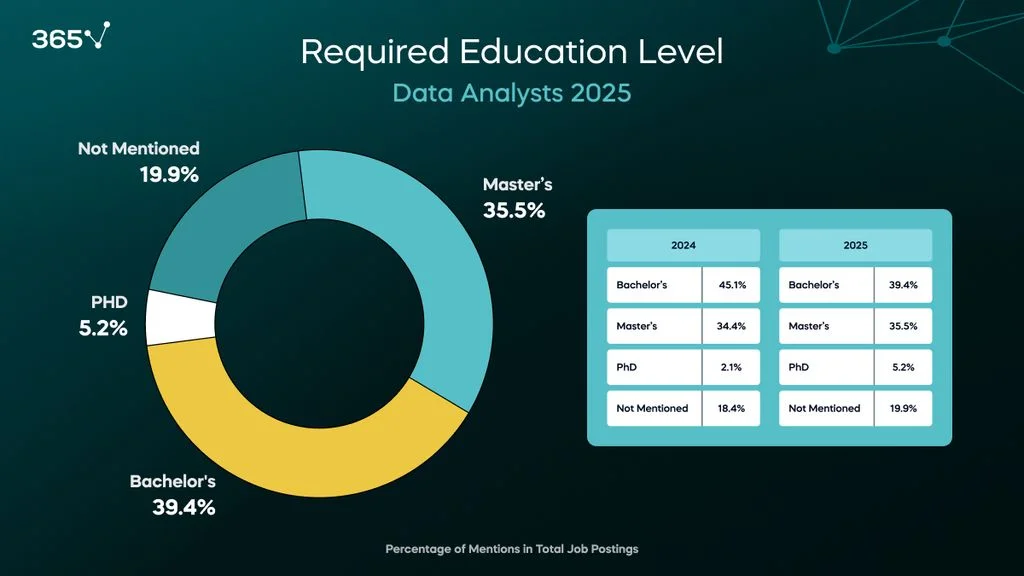 Let’s look at the data analyst education requirements of 2025!