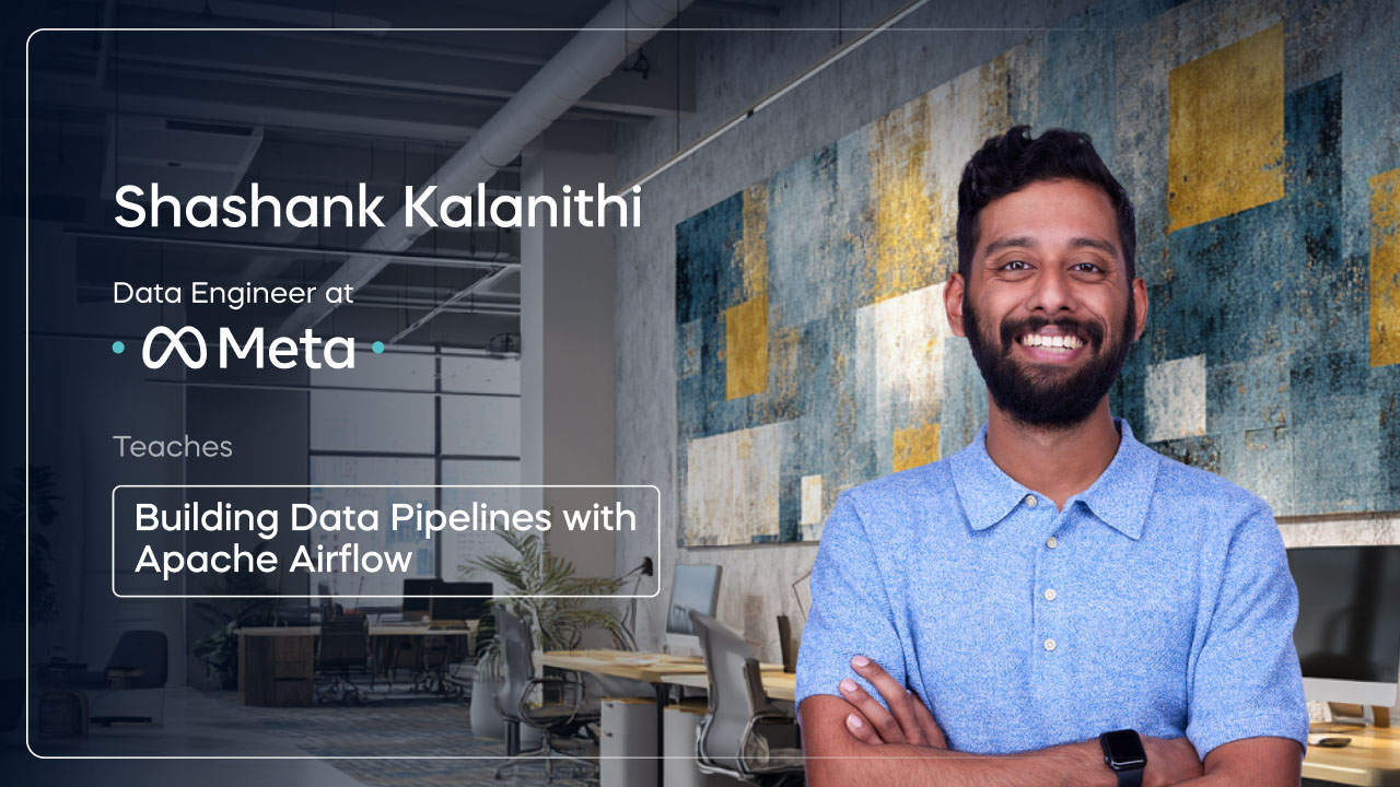 Learn the art of cloud-based data engineering from course instructor Shashank Kalanithi, a seasoned professional with extensive experience in the data and tech industry. Shashank has held various roles including data analyst, data scientist, data engineer, and is currently a software engineer at Meta. His passion for teaching, coupled with his hands-on expertise, ensures that you’ll receive not just knowledge but actionable insights that you can apply directly to your work.