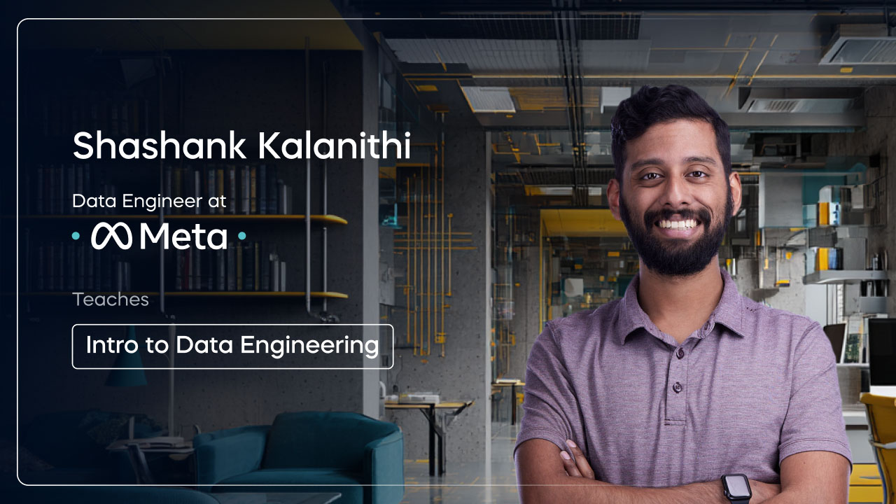 Learn data engineering from course instructor Shashank Kalanithi, who has rich experience in the data and tech field. He has held roles as a data analyst, data scientist, data engineer, and currently works as a software engineer at Meta. Shashank is passionate about teaching and is eager to pass on his experience to you. His engaging teaching style combined with his notable professional experience make him the perfect tutor for you.