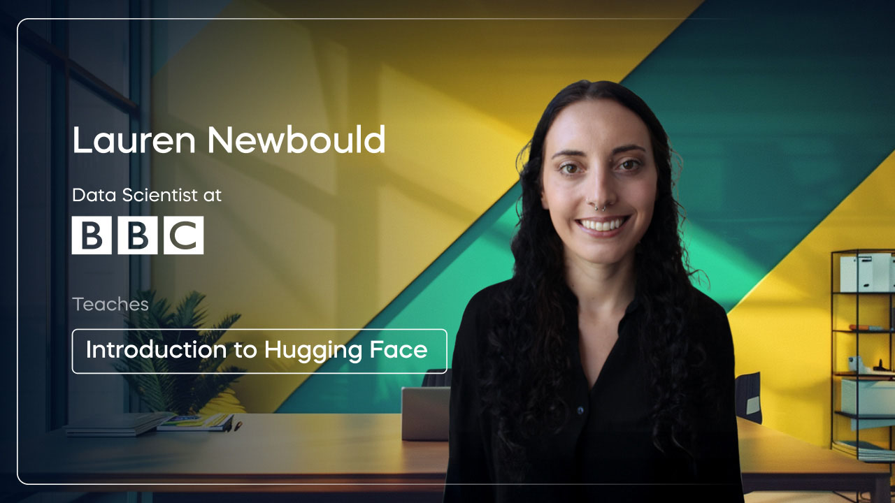 Through engaging text and video lessons, interactive excersises and coding tutorials, you'll gain the practical skills needed to work confidently with Hugging Face.