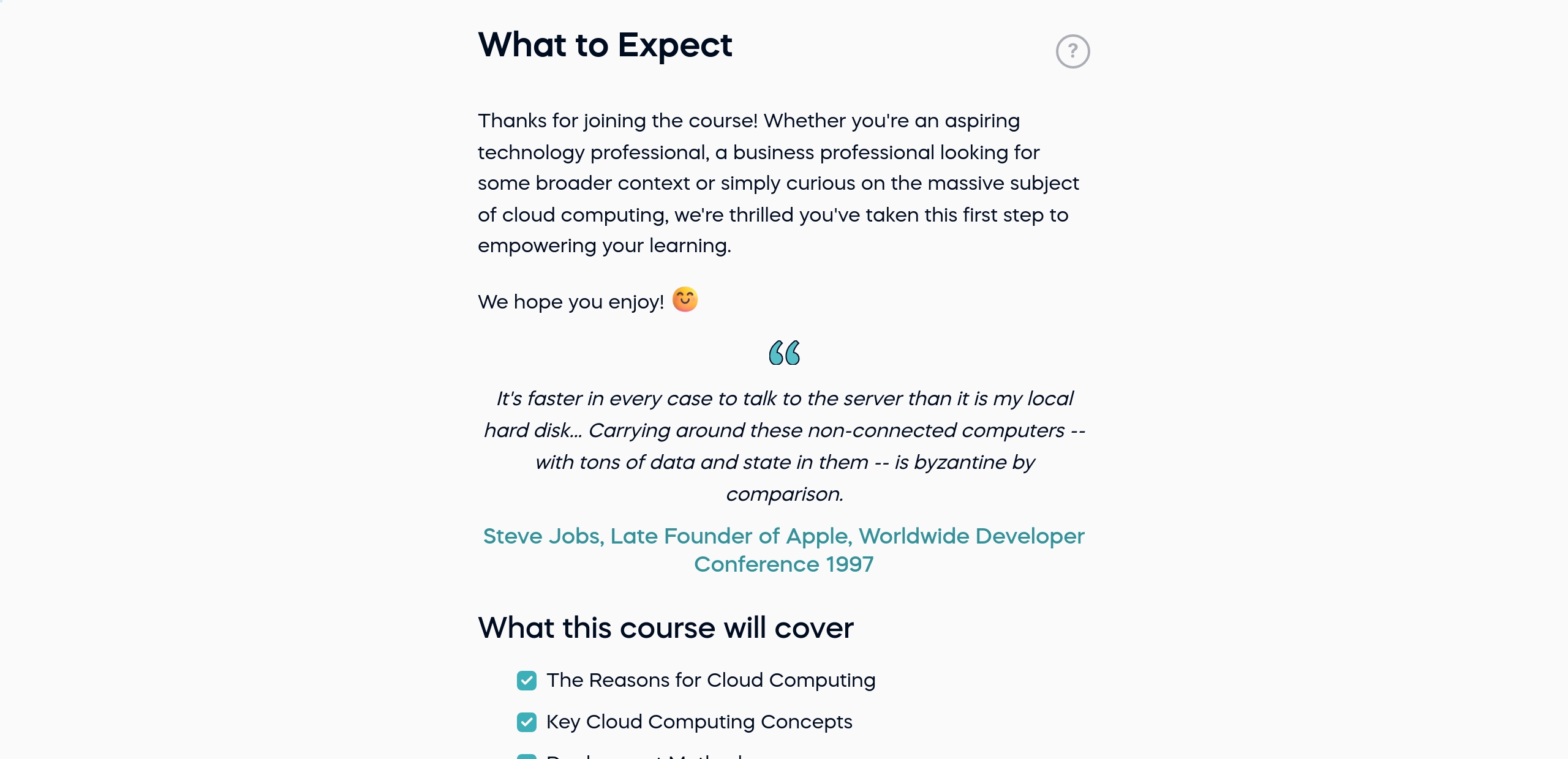 Through interactive lectures, videos, and real-world case studies you'll develop a solid understanding of cloud computing principles and their practical implications. By the end of this course, you'll be equipped with the knowledge and confidence to evaluate cloud solutions for your own needs or contribute effectively to cloud-based projects within your organization.