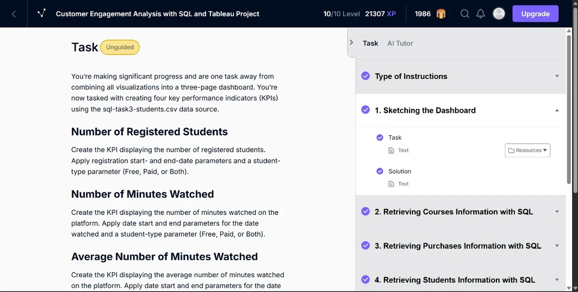 ^ That's a different page (Task 7, rather than Task 6 which I used for my example). Task 6 does have bulleted lists in "Unguided" mode.