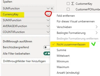 I checked the column settings and had to enable the "do not summarize" option. And I got the same table. Thanks for the advice!