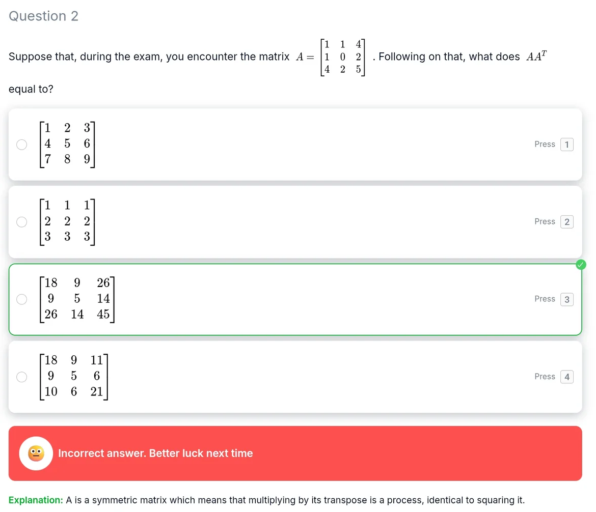 Mathematics Course Exam: Question 9 - Explanation of correct answer