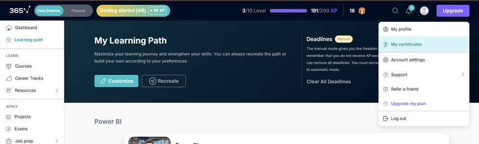 And 365 certificates are a credible way to showcase verified progress to recruiters and employers. Many employers recognize them—and adding them to your social profiles helps recruiters find you faster and gives your profile extra credibility.