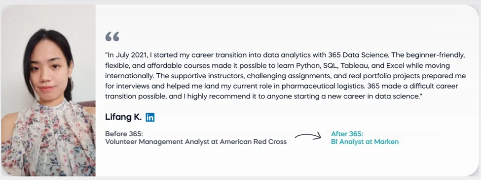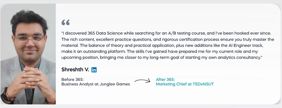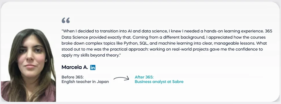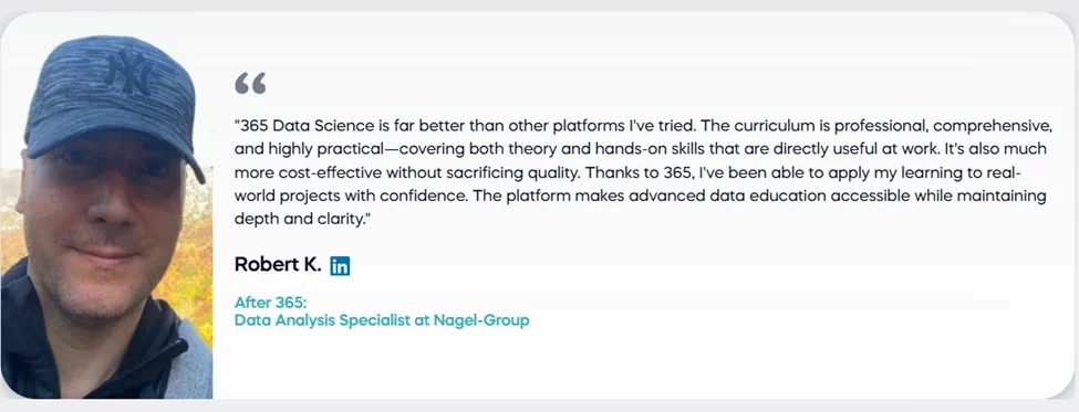Reviews and accreditations are useful—but sometimes the clearest signal is hearing from people who actually did the work. Here are a few stories from real learners who used 365 Data Science for career growth.