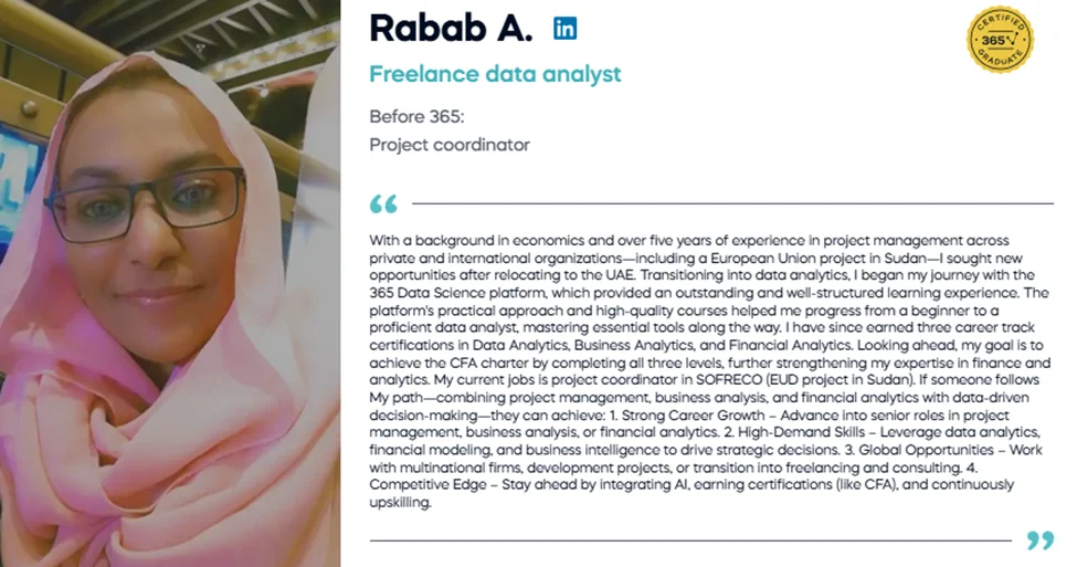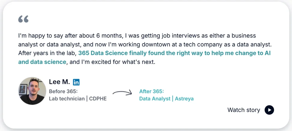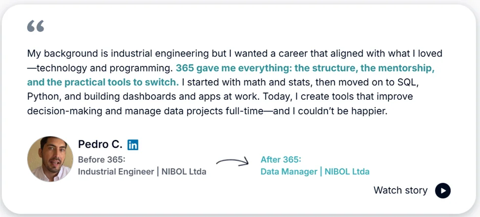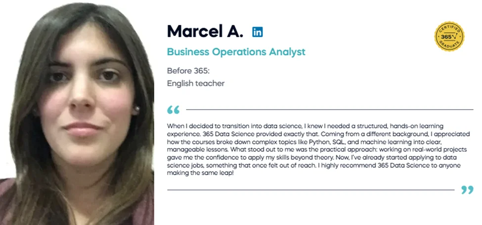 You can read about features all you want, but what matters the most is how others experience it—and whether the practice can translate into real skills. Here are a few testimonials from learners who used 365 Data Science.