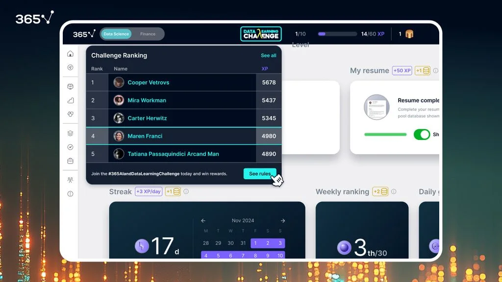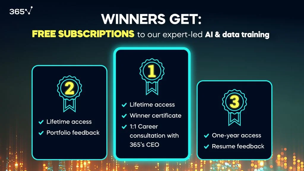 We're excited to announce the 365 AI and Data Learning Challenge, a unique chance to enhance your skills, earn rewards, and potentially win lifetime access to our platform!