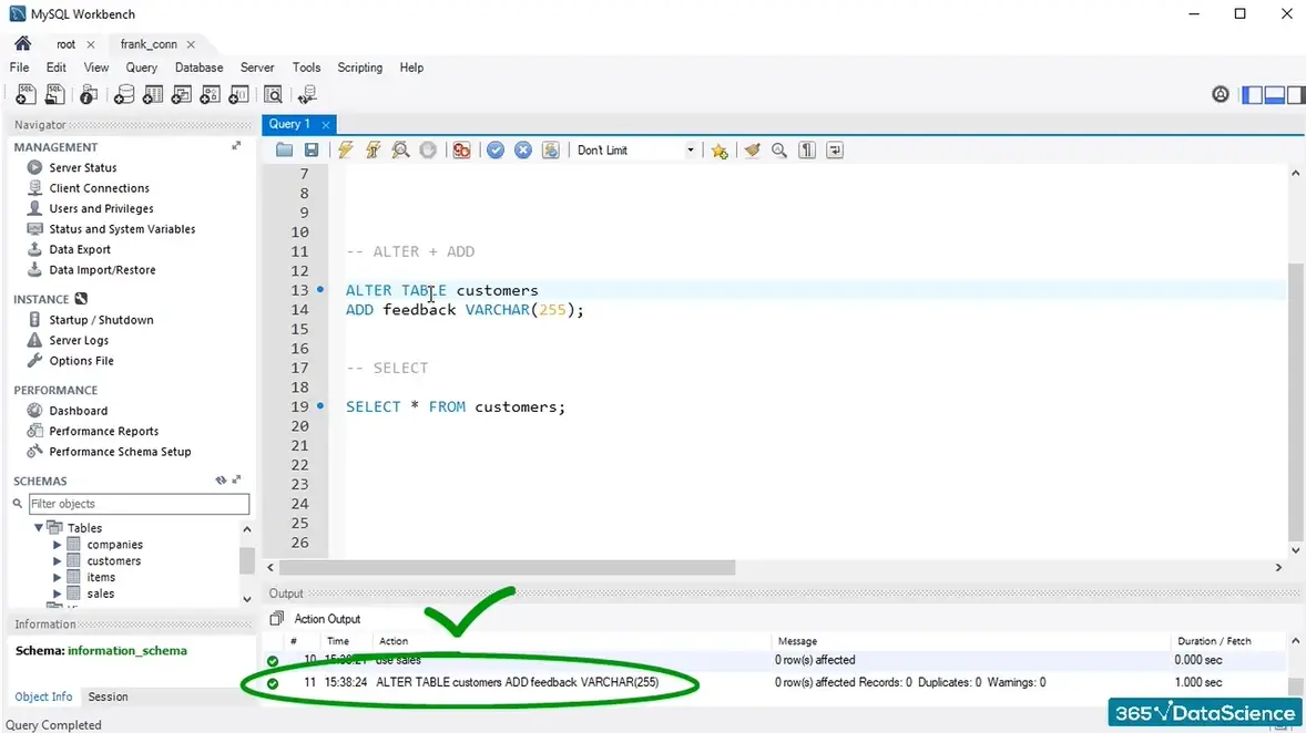 Additionally, you can also revoke frank’s permission to apply the SELECT command in the “Customers” table:
