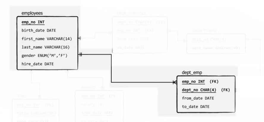 Let’s focus on the “employees” and the “dept_emp” tables.