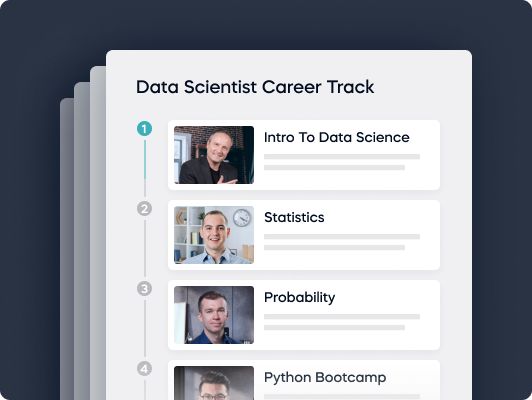 Easy, flexible, and user-friendly. Our data science corporate training aims to help everyone reach results with minimum effort through self-paced video lessons paired with downloadable learning resources they can always use for reference. Once your team joins the training, all members automatically receive 24/7 access to our entire library of courses, exercises, practice exams, and career tracks. There’s no limit on the time they spend on the platform, the number of exams completed, or the number of courses and career rack certificates they can earn.