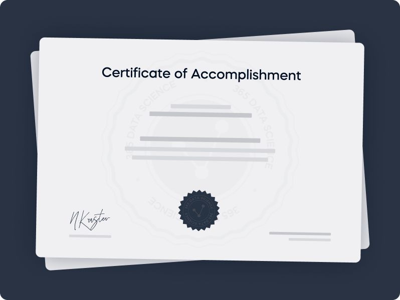 Absolutely! Our certificates of achievement are official industry-recognized 365 Data Science credentials that confirm your employees’ accomplishments and domain expertise. Your team members can earn as many of our two types of certificates of achievement (Course and Career Track) as they set their minds to.